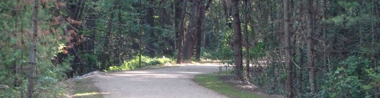 I was able to walk in sneakers since the packed stone dust is easier on my feet than pavement. There was a lot of shade on the trail, but the horse flies were buzzing about where there is standing water in the drainage areas along the edges of the path.