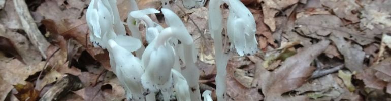Indian pipes pushed their way through the leaf litter.