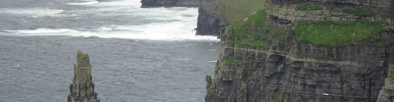 Choosing to go to Ireland in August is choosing to join 50,000 of your best friends when you visit the Cliffs of Moher. We read that if you wait till after 4PM you will have fewer fellow travelers on the trail, but of course this was read in hindsight. There are additional access points besides the visitor’s center in Doolin, and the cliffs do go on for miles and miles, but the easiest walking is near the visitor’s center.