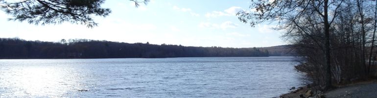 The lake at Hopkinton State Park was created by a large earthen dam, which offered a broad, flat place to walk next to the water.