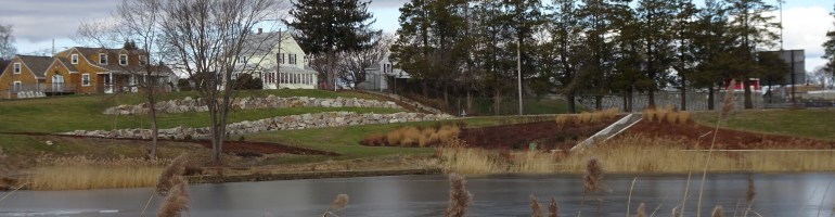 Another tiny park was Jones Pond, next to Pierce Field. I learned from Ernie that this area has been cleaned up and landscaped recently. I also learned that 4th of July fireworks for E. Providence are launched from next to the pond, so the area is closed to the public while they prepare the fireworks each July.