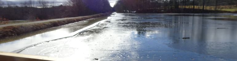 Note the uplifted plates of ice in the canal