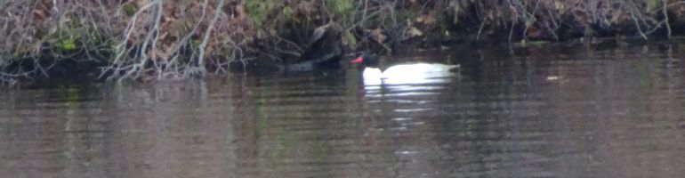 I saw only a few visiting migrating birds, male and female common mergansers,