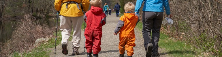 We gathered and got everyone signed in. By the time we were organized, the rain had stopped, and we were on our way. A virtue of walking the tow path is that it offers dry footing. During another session this past winter, we took to the large field across from the visitor’s center, where our largest group to date ran, and ran and ran in the open spaces. But that day the ground was dry. This time, we kept to the high ground.