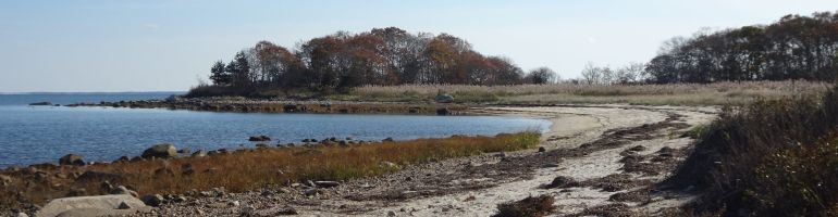 Easy walking paths along the shoreline at Ft. Phoenix in Fairhaven along the shore