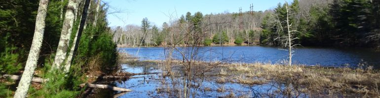 Beaver dam helps create the pond that is the headwaters of the Woonsquatucket River