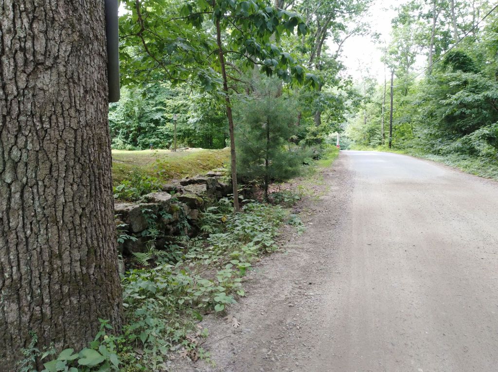 The walls are also often overgrown by shrubs, vines, and poison ivy, making capturing photos difficult as these stacks of rock track along each side of the road. We spotted one farm track off the road we rode on that had walls along both side of the path, so I grabbed a picture to show what I mean when trying to describe walls lining both sides of a path.