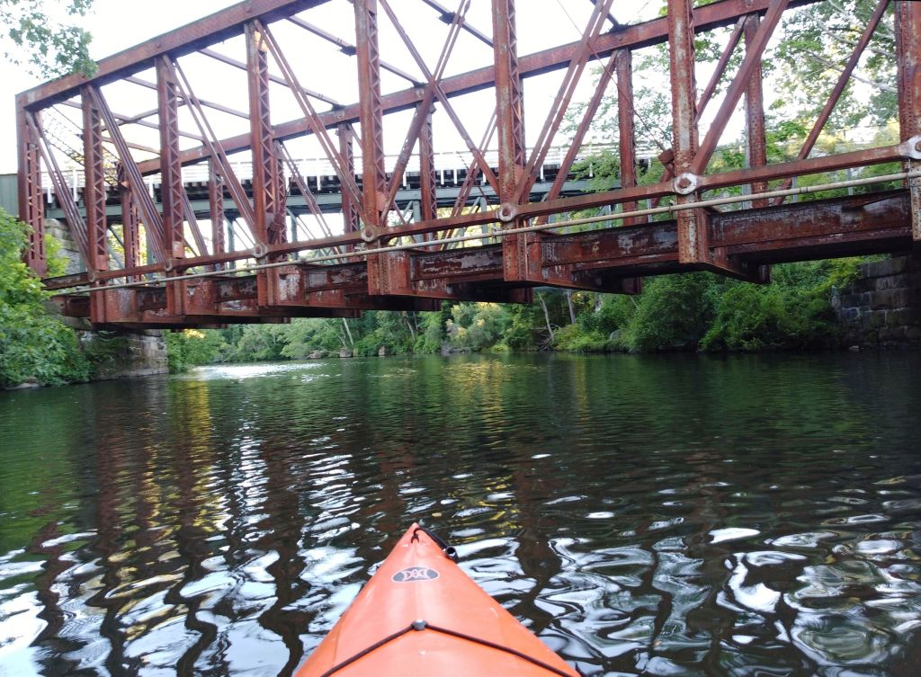 In fact, it has been too many years. Since we were last here, viewing the bridge structures from the water, the SNETT/Blackstone Greenway has now been completed, and the bike path that uses the Triad Bridge is a shining structure, painted, complete, providing easy walking and pedaling back and forth across the Blackstone River.