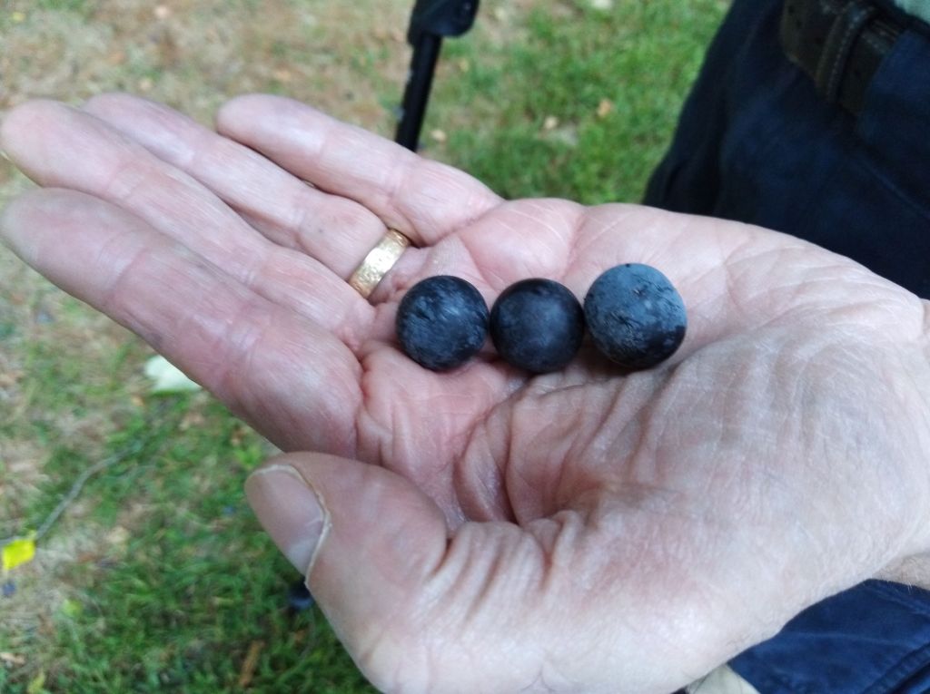 A few swipes with my hiking pole knocked down a handful of grapes for us to enjoy. We left the rest for the birds and other critters who are sure to visit after dusk.