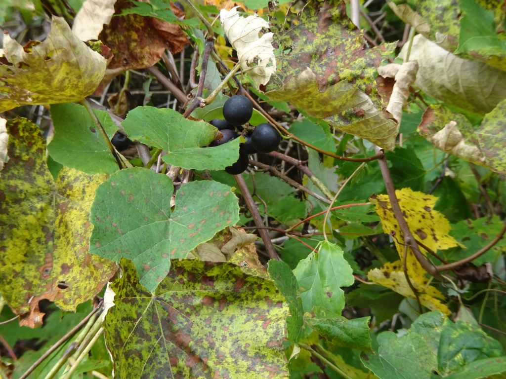 We caught the scent of wild grapes, and when we passed back by that area, we paused. Yes, some luscious large Concord grapes quite ripe, almost overripe, were within easy reach. What a wonderful addition to the lunch we’d packed to enjoy on the road.