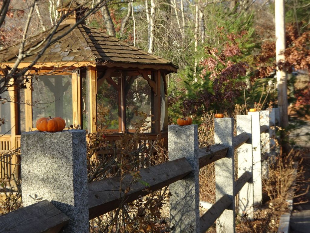 My neighbors perched tiny pumpkins along their fence and surprisingly, the squirrels have not eaten all of them yet! Another touch of color along the way.