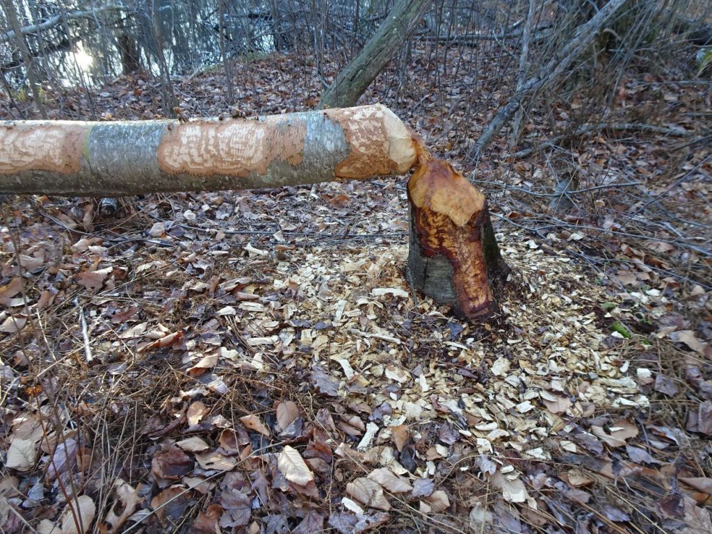 We walked along the Glebe trail next to this slow moving stream and found old signs of beaver. A few more steps revealed very new signs of beaver. The wood chips around the felled tree were quite fresh.