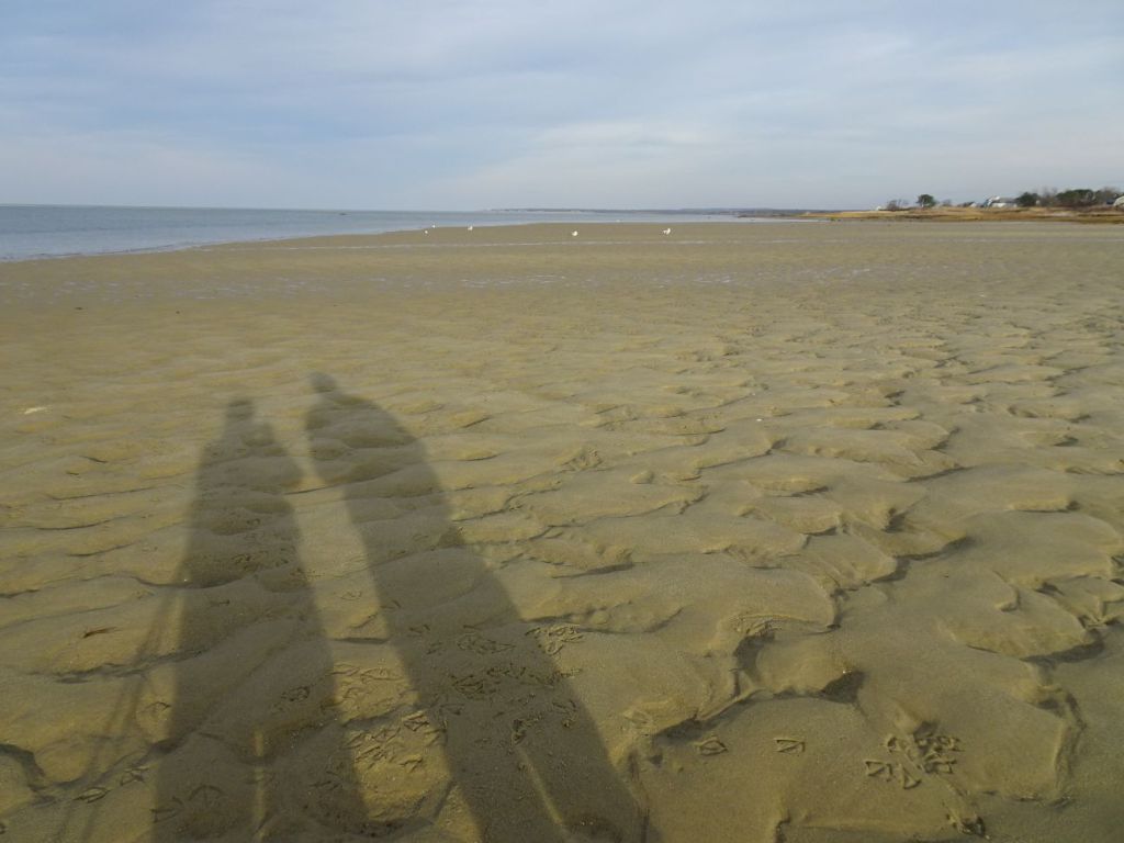 We looked at the gps, and my husband noted with a smile, “It says we’re standing in the ocean.” Well, yes, that would soon be the case again. But for the moment, it was (mostly) dry land. Seagulls shared the mudflats with us, leaving their prints wherever they wandered.