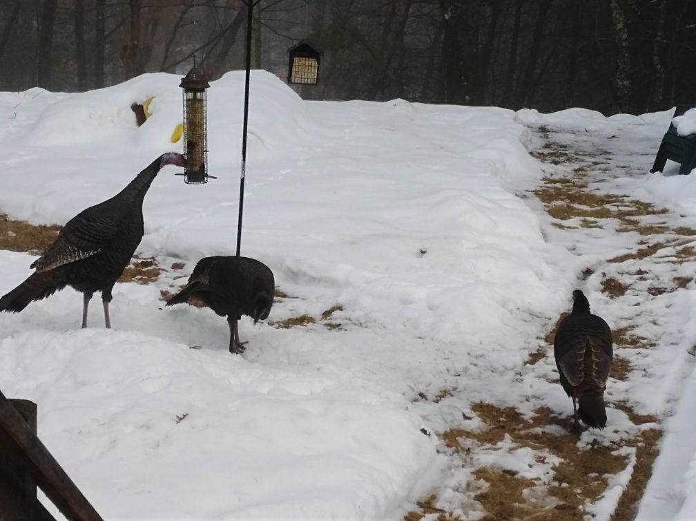 The road is plowed, but an older road, so ice is a concern. We’d recently had some rain on top of the snow, so I set out with care. Thanks to town sanders, the road was mostly clear and nearly ice-free. The sky was a stunning blue in one direction.