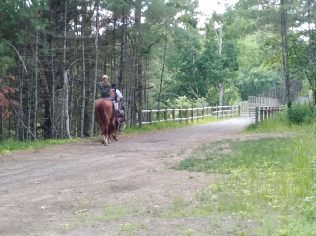 For now, this path is great for walking. We also saw a pair on horseback. Horses will do fine as well, though we do hope dirt bikes will be aware of the dangers of startling horses on a trail. We also noticed trail markings for the RI North South Trail and recall that prior to the bridge’s construction a substantial detour was required for hikers to take. The completion of the bridge makes this no longer necessary.