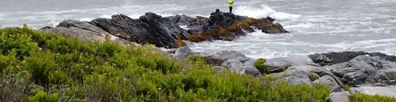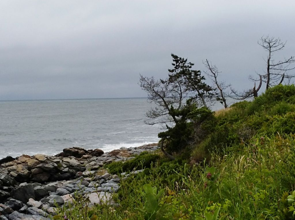 The surf was rough. Although we saw fishermen out on the rocks surfcasting, I did not envy them. The waves kept crashing into the rocks along the shoreline, and the tide was coming in. We kept our feet on solid ground and kept moving.