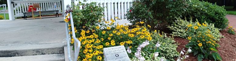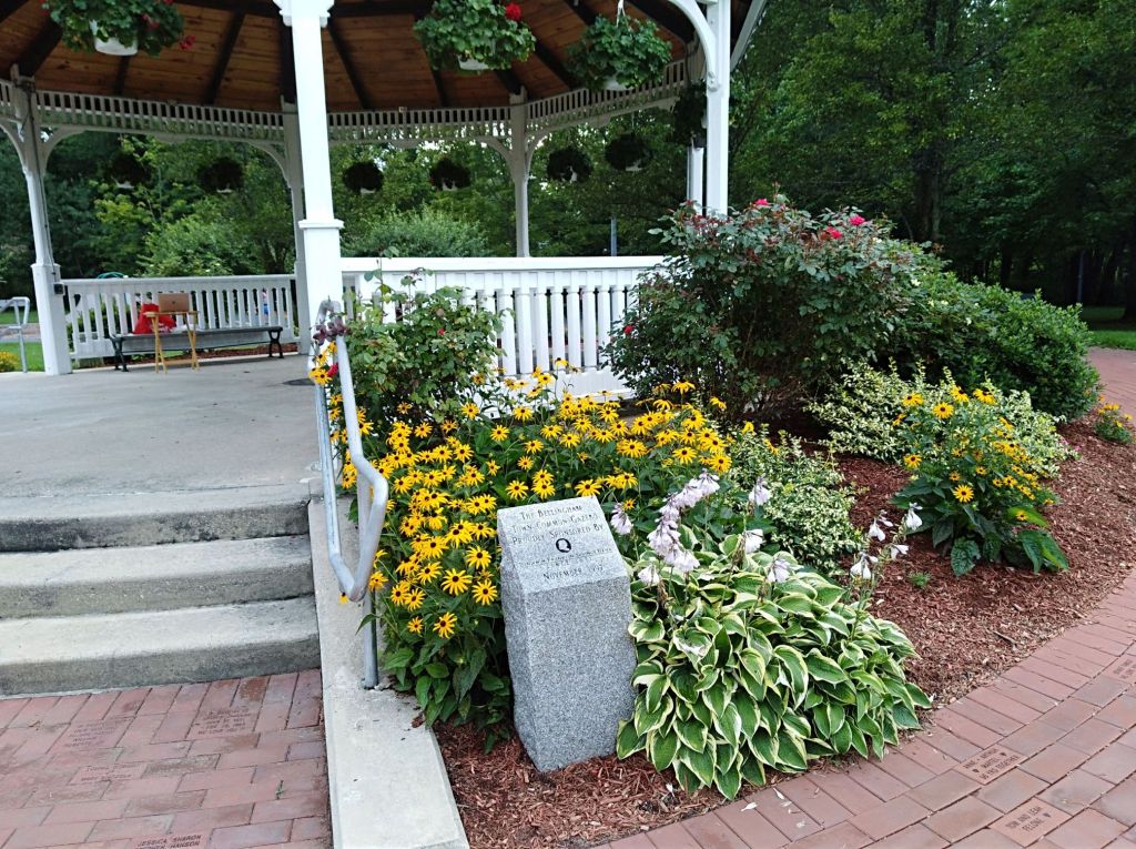Summer flowers brighten the area around the gazebo at Bellingham’s town common