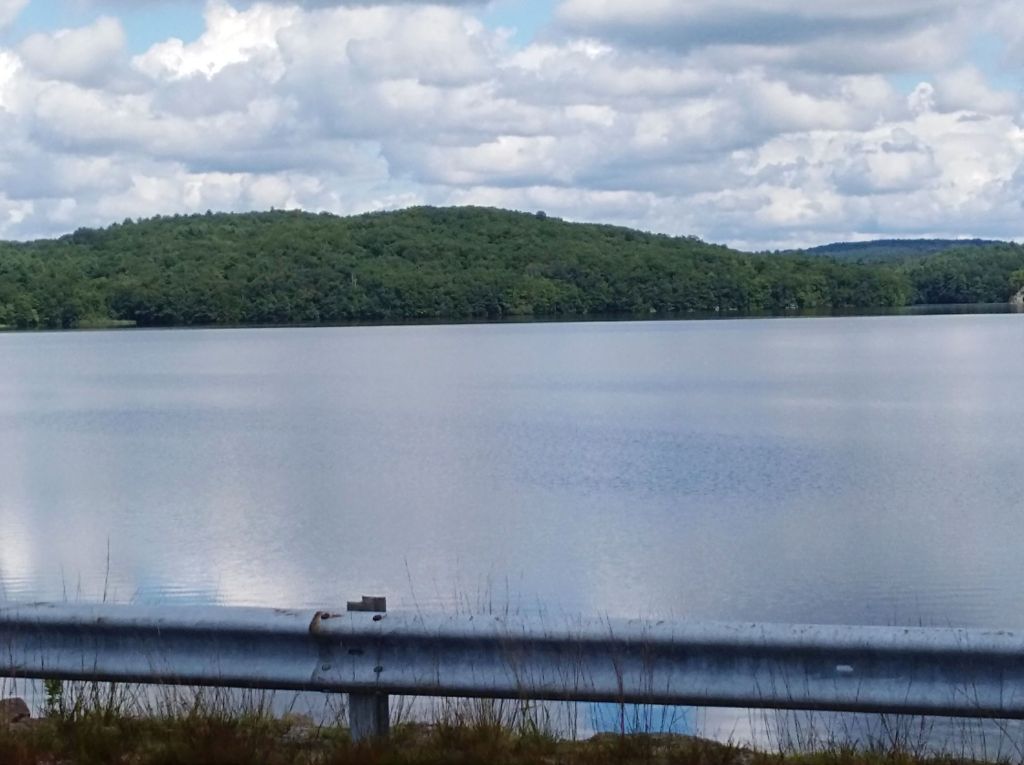We reached the Diamond Hill Reservoir in Cumberland, RI uneventfully, and were reminded why we have not visited here more often. The reservoir is rather unwelcoming to visitors. Guard rails and fencing prevent easy access to the water. And the biggest hurdle to visitors–there is no parking anywhere near where the best views of the water are located.