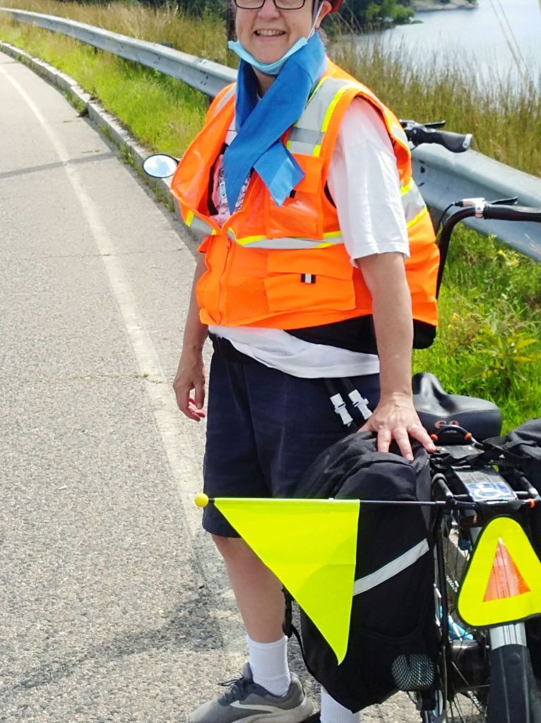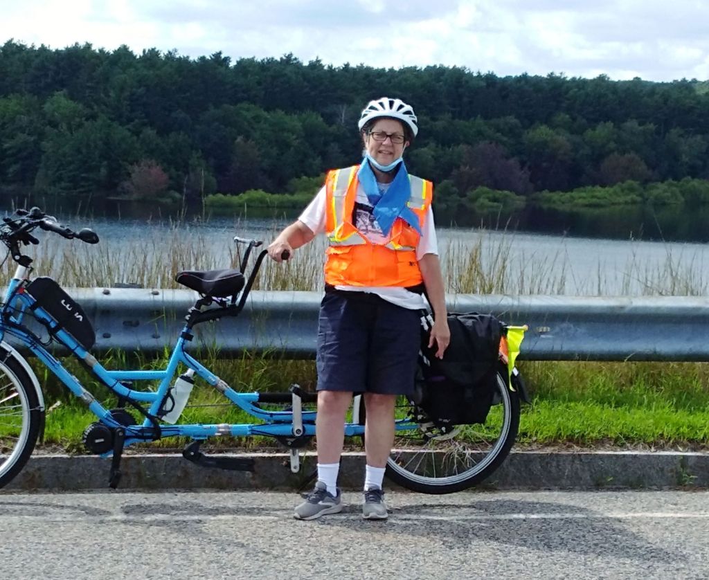 Stopping on the shoulder of Reservoir Road in Cumberland is a much easier proposition when riding a bike, even our tandem bike, with all the equipment we need to keep me safe in warmer weather.
