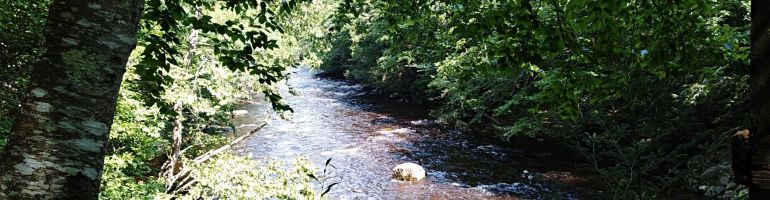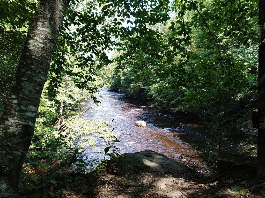 We visited shortly after a hurricane had blown through, bringing heavy rain with it and filling all the area rivers to the brim. Rather than a calm stream, we found the Salmon River to be a raging torrent, very dramatic. Thankfully the steep embankments we walked and rode along are high above the high water mark, and we were able to stay dry as we explored the area.