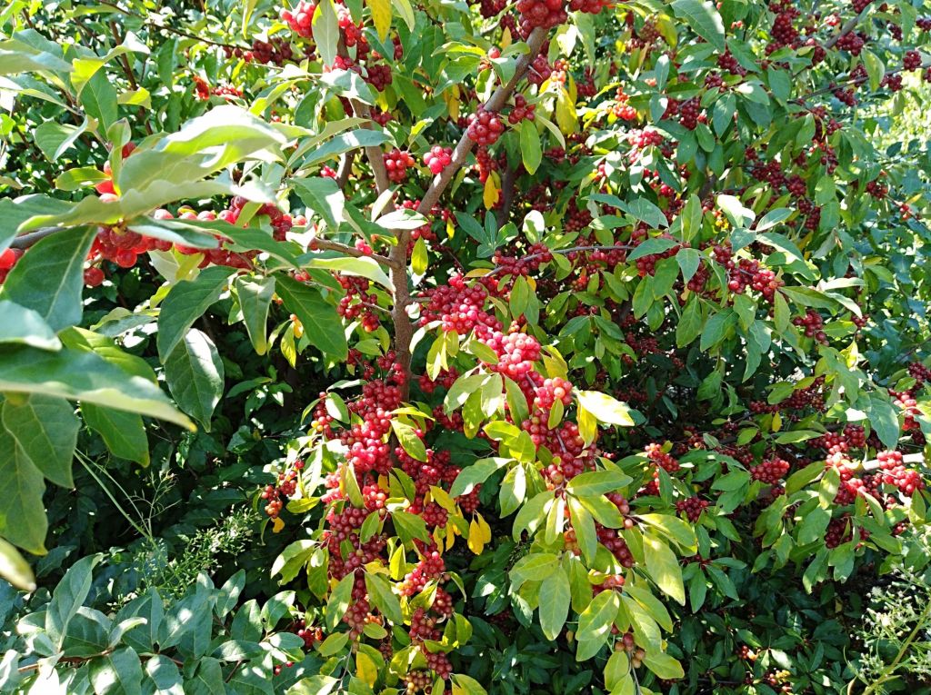 After lunch, we pulled out our bike and headed on the Airline Trail toward East Hampton. Along the way we found autumn olive trees laden with very edible berries (very tasty, and extremely high in vitiamin C). Sadly, we did not have containers in which to keep the berries, so I grabbed several handfuls and enjoyed a fest right on the trail.