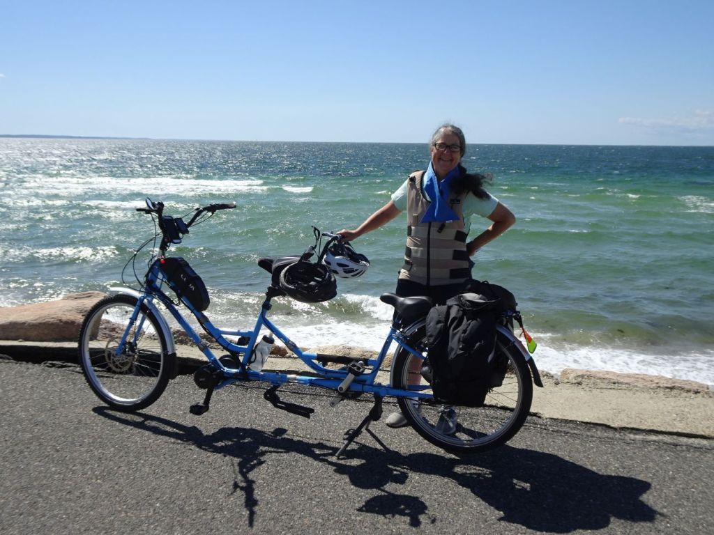 Because of our experiences this past year, our bike is now better set up to venture onto local roads more safely. We have a safety reflective triangle, that makes us more visible. For extremely busy roads we wear reflective vests, and grab our flag that helps drivers understand they need to provide some distance. I felt much more relaxed than in the past when my co-pilot headed off the trail and took us down to a local beach quite near the north end of the trail.