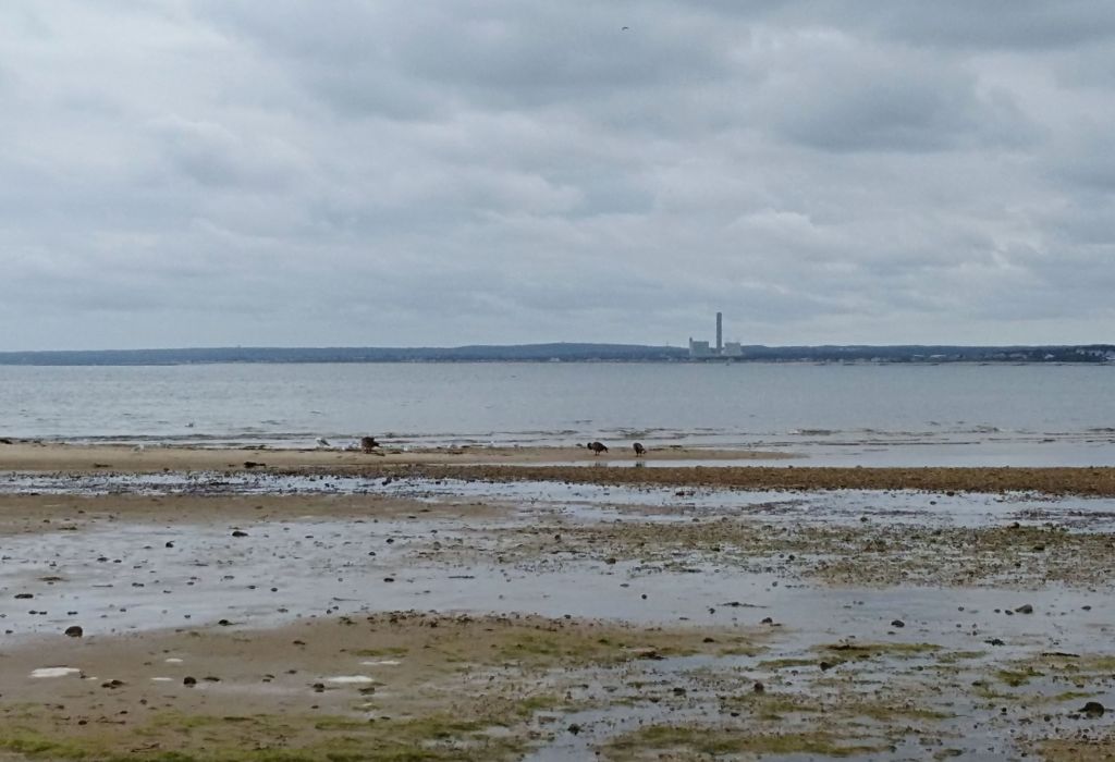 Just south of here are sand cliffs that offer some lovely scenic views. In the distance is a power plant, which we later figured must be the one on the south side of the Cape Cod Canal.