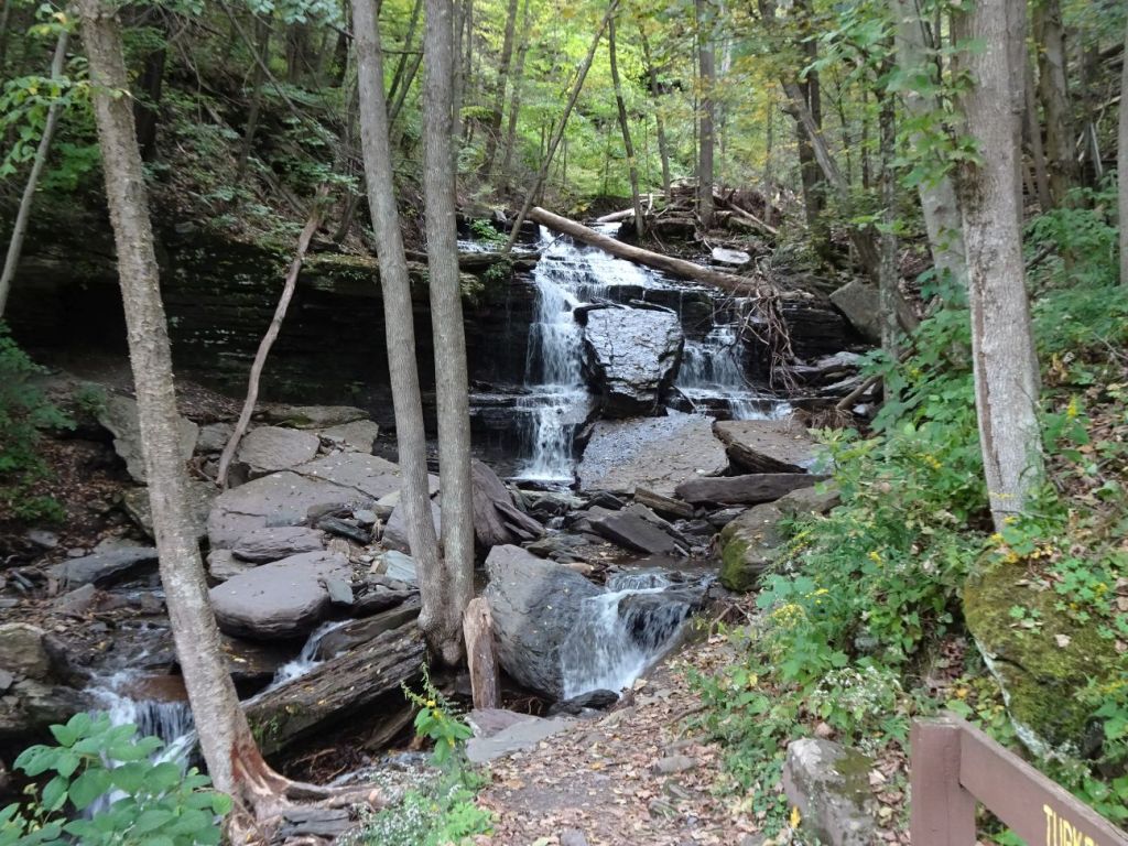 Our first stop of several days was Pine Creek Gorge, a destination we had heard about on a previous trip to Pennsylvania. We checked in to an RV park, and began learning the ropes. Every spot had both electricity and running water, as well as a picnic table. Modern campers can be like tiny houses, with running water, a kitchen, full (tiny) bathroom, bed and seating with a table. We chose Pettecoat Junction in Cedar Run, PA primarily because this RV park abuts the 62 mile long Pine Creek Gorge rail trail.