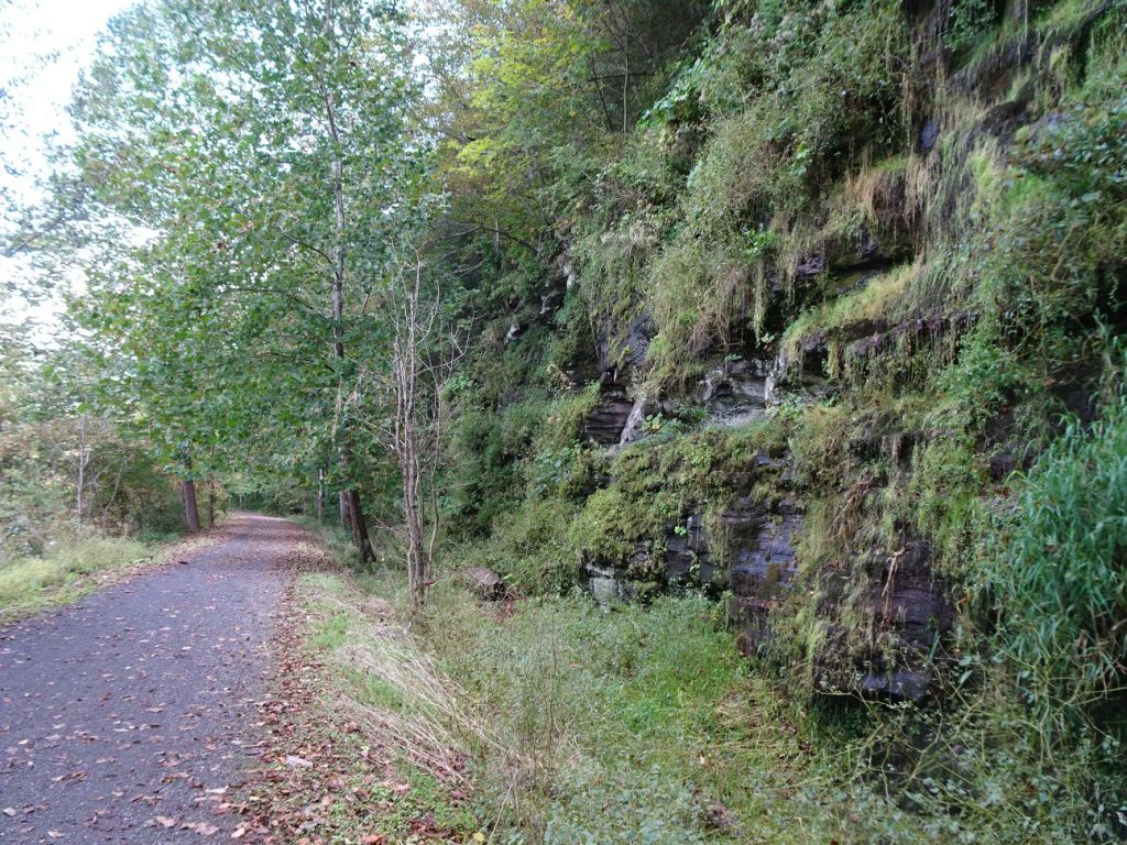 On the rail trail heading north we met few others in late September. We traveled seventeen miles, thirty-five miles round trip, almost to the northern terminus of the trail, and into the official “Grand Canyon of Pennsylvania” area. The “creek” (what anywhere else would be called a river) flowed alongside the rail trail basically the entire trail. After a few miles we saw no roads–this is truly a rather remote part of the mountains of Pennsylvania.