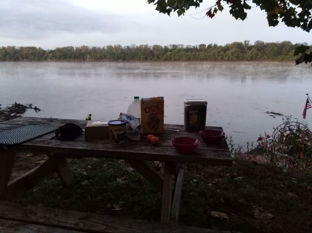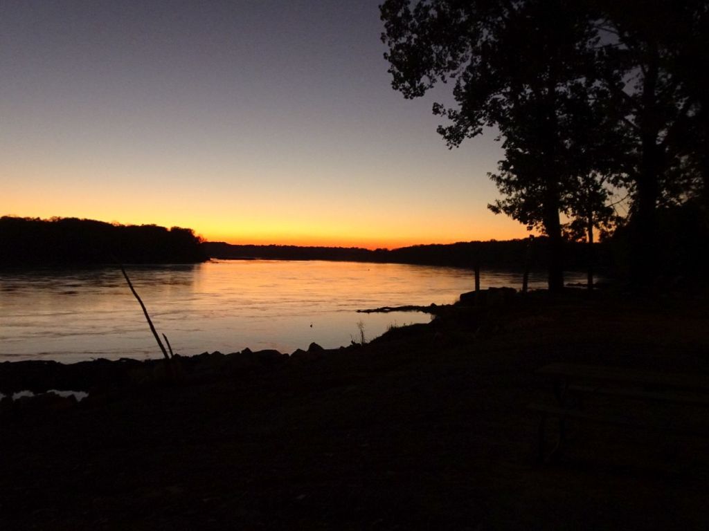 By the time we were up and running again, it was late, so we stayed in Columbia overnight, at an RV park directly on the Katy trail, Coopers Landing. As a plus, after the anxiety of the day, our reward was a camping spot facing directly onto the Missouri River. We watched the sun set over the river, and woke to fog on the river. Breakfast by the water, watching the fog clear was a real treat.