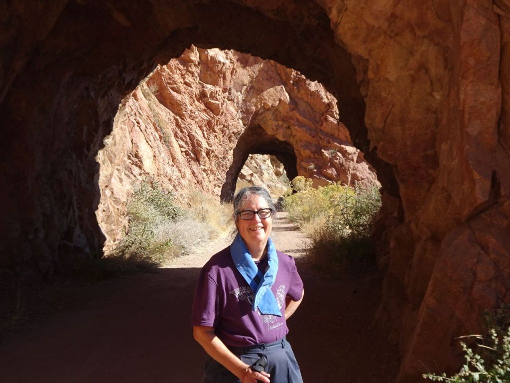 An extra fun aspect of our walk above the gorge on the rail trail was traversing four tunnels blasted through the rock when this path was being prepared to have a railroad travel through it.