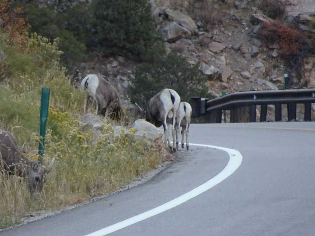 We spent time simply exploring the Arkansas river west of Canon city as well, and were lucky enough to spot big-horned sheep just returning from their daily drink at the river before heading uphill back to the cliffs where they spend most of their time. We wondered how they safely cross the busy road each evening, but at least the day we saw them, they all appeared to make their way over with no injuries.