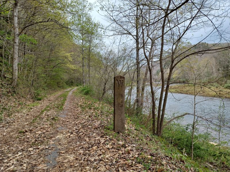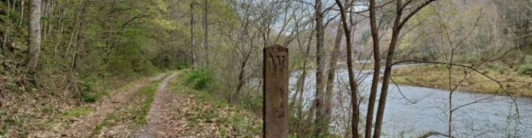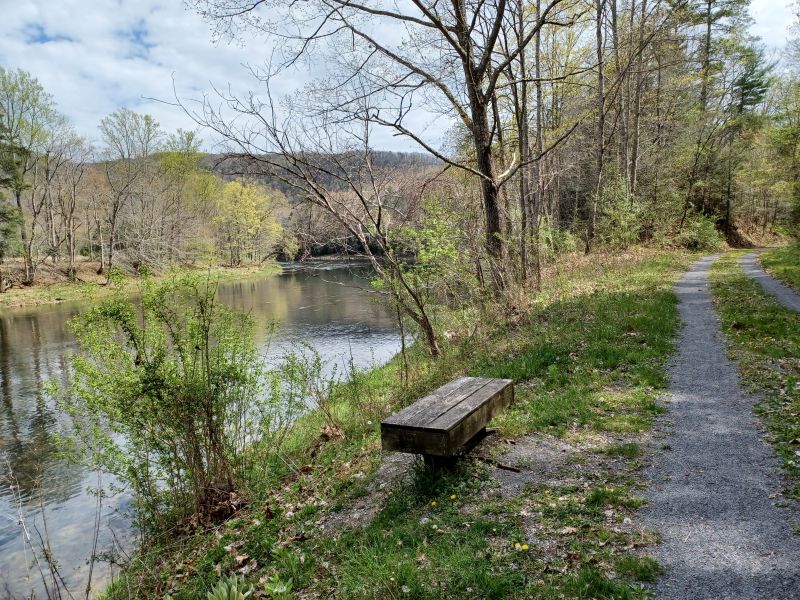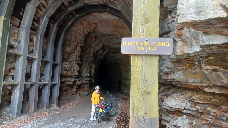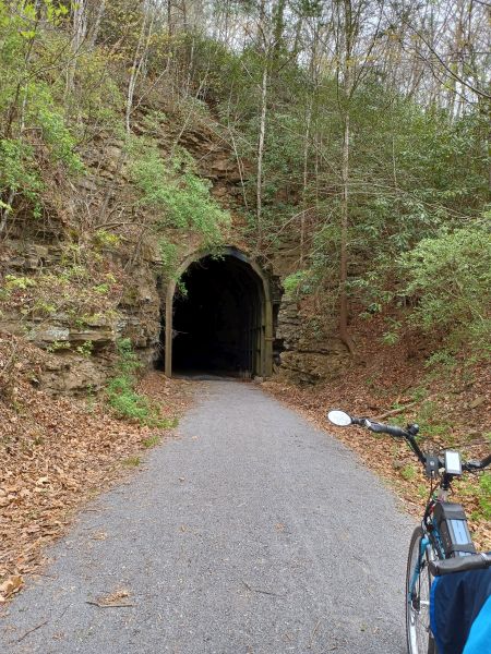 We love riding on rail trails alongside rivers. The Greenbriar rail trail follows the river of the same name, and passes through two tunnels. Seventy-eight miles long, the trail is in great shape, with solid footing, quite level, and is perfect for biking. Walking works great too; you will simply have to take longer to see everything along the way!