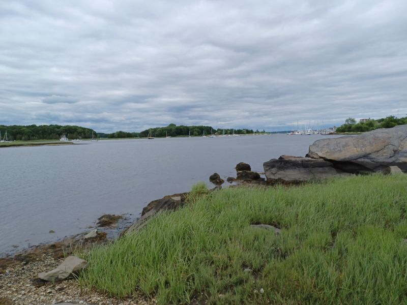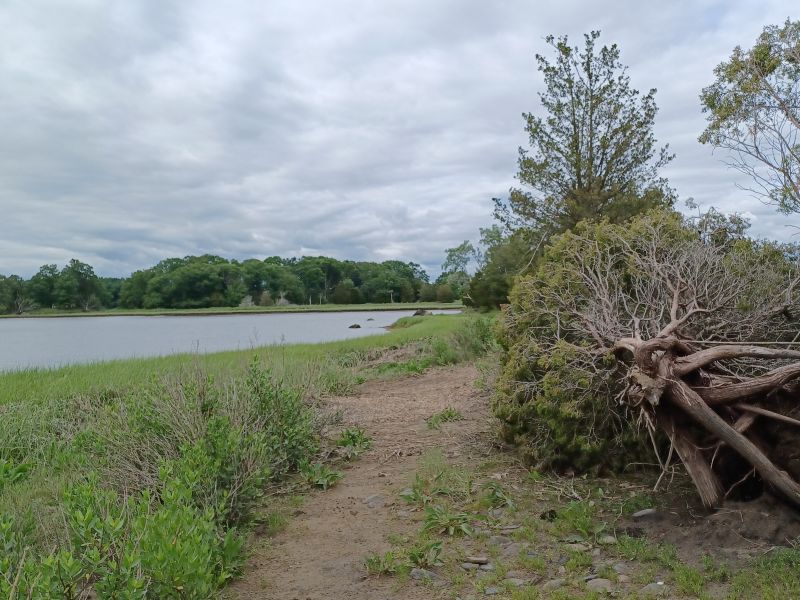 A paved walking path (about 1.5 miles) offers a short, level place to wander through the woodlands adjacent to the shoreline. One footpath down to the water had a sign directing visitors to an easy spot to launch kayaks. This, and other trails leading to the water from the boat ramp area were very walkable. The only other visitors we encountered were those pulling boats out of the water at the boat ramp, and two kayakers, returning from a paddle around the multiple coves at the edge of this western side of Narragansett Bay.