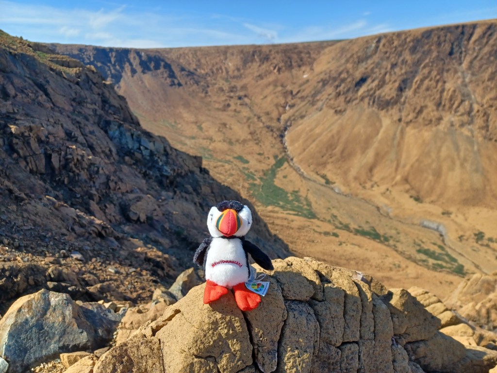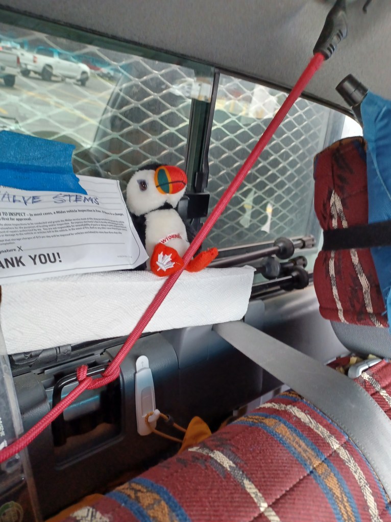 After spending so much time simply watching puffins both on from shore and during our boat ride, it seemed right that we bring a puffin home with us. That is, a soft, furry stuffed animal puffin. We found him at the Edge of Avalon Interpretive Center at Mistaken Bay. We named him Smoky, a nod to a joke some of us find funny, about the delights of smoked puffin (mostly an Icelandic thing, I’ve heard.) Smoky has a great sense of humor and does not take this personally….