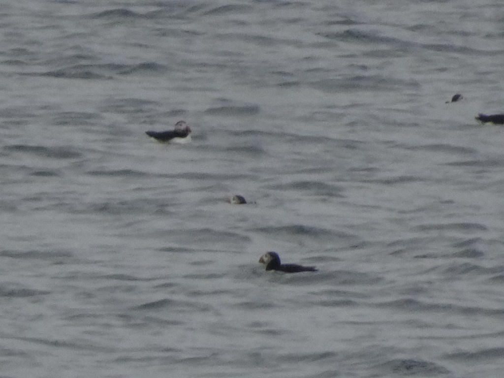 Puffins soar back and forth from the slopes to the water below where they float like ducks and then dive like other diving ducks we have seen in so many places.