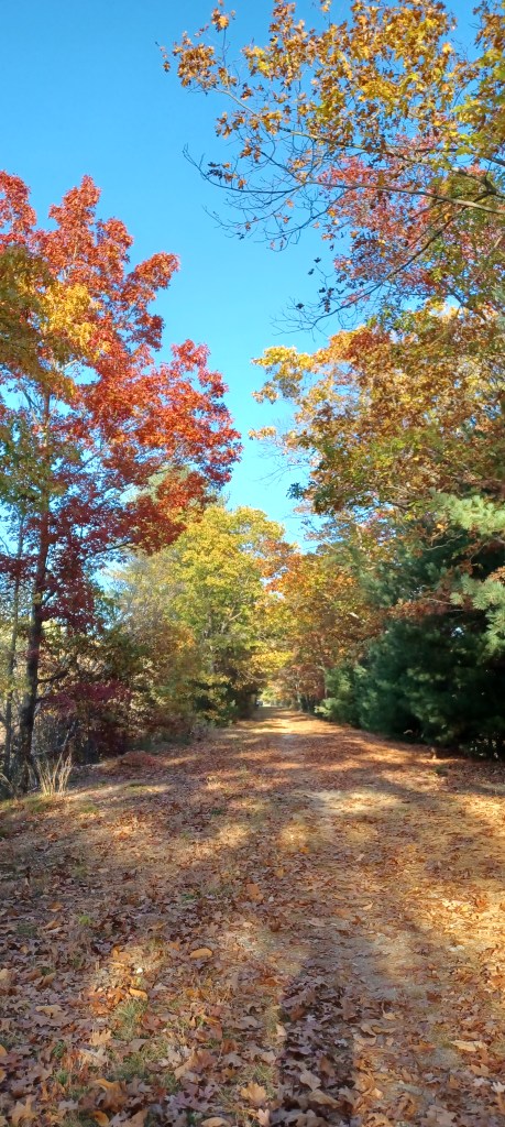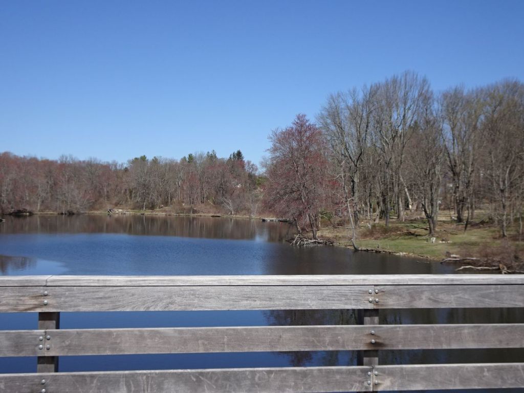 From Farm Street in Blackstone, going west is also quite passable all the way to Rocco Drive in Blackstone. Both sections in Blackstone, starting at Farm Street, east back to Bellingham and west toward Rocco Drive, offer water views. We enjoyed colorful foliage, and a few rock cuts, which is where rock was blasted to make way for the train tracks. Dynamite was used to make way through the rock for the tracks. Lots of crushed stone was produced by these efforts, which was used to fill in low places when the rail line was being constructed. Trains cannot pull up steep grades. This fact has made the beds of reclaimed rail line ideal for rail trails, and Easy Walks.