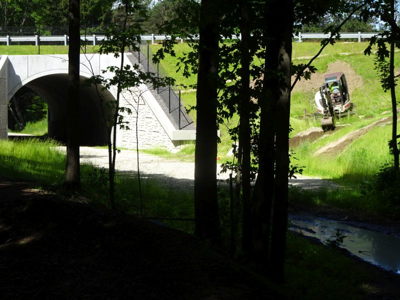 This tough section of trail has now been turned into an Easy Walk through woodland, open now for an additonal mile to the bridge that was built over Rt. 126 a number of years ago, anticipating development of the trail. The day has finally arrived when the hope for a passable trail to this tunnel has been fulfilled.