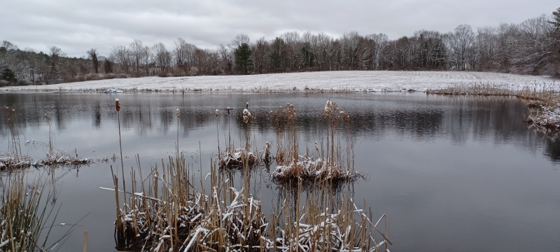Ice can be a huge barrier to getting out in winter. For those of us with mobility challenges (and others) it can keep us inside, missing out on the beauty that is found in colder weather. In general, newly fallen snow is pleasant to walk through. With little snow so far this winter in New England (at least southern New England) we have been able to get out fairly often without the concern of ice. A beautiful spot we revisited recently after a light snow is a Mass Audubon property, Pierpont Meadow in Dudley, MA.