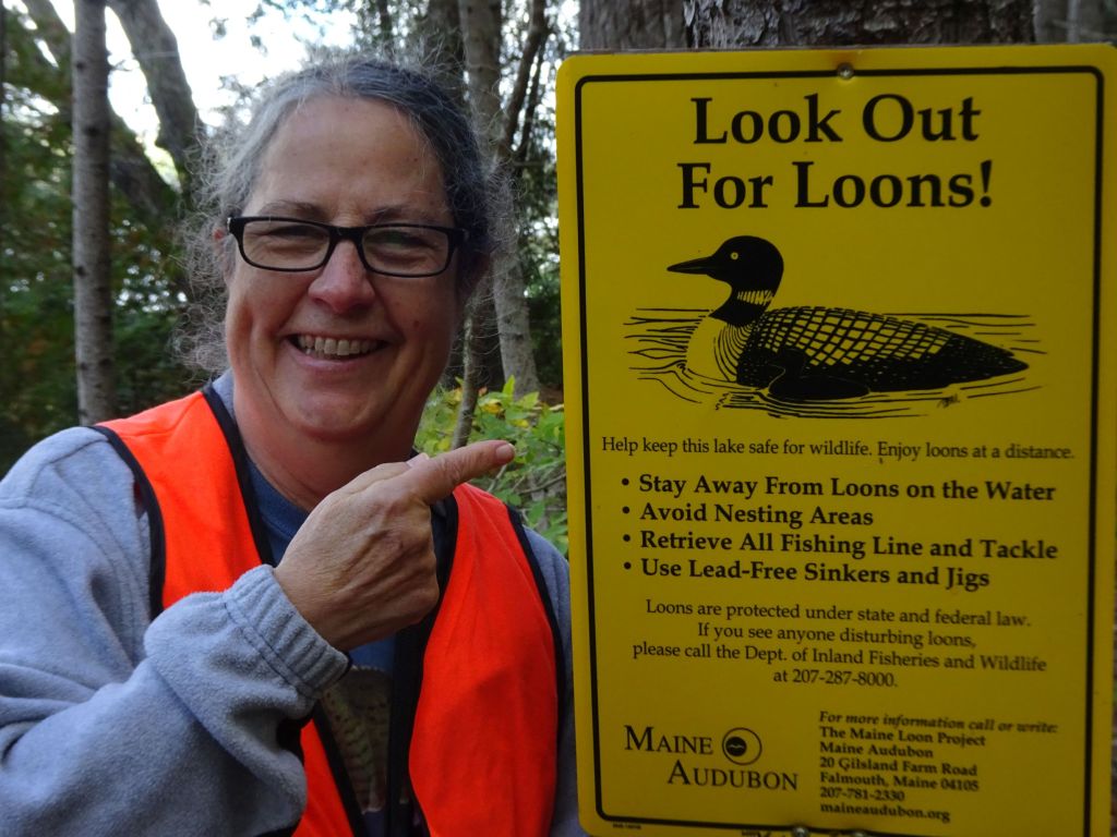 It may have been my husband’s broad smile, his knowing look, and eagerness to get me right next to the sign for this photo. Some people may have implied that I might have something in common with loons. I am not sure that this is true. Despite its important information attempting to educate the public about caring for wildlife, the juxtaposition of me with the sign still makes me laugh.