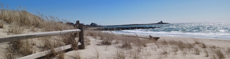 Call us contrarian, but we much prefer visiting beaches almost any other time than summer. Off season, beaches are uncrowded, parking is much less problematic, and you are quite likely to spot migrating waterfowl just off shore. For all these reasons and more we set off on a brisk, windy, March day to explore Napatree Conservation Area at Watch Hill, Westerly, RI. The Watch Hill Conservancy holds a conservation easement for this area. Here’s a link that can answer many frequently asked questions about Napatree.
