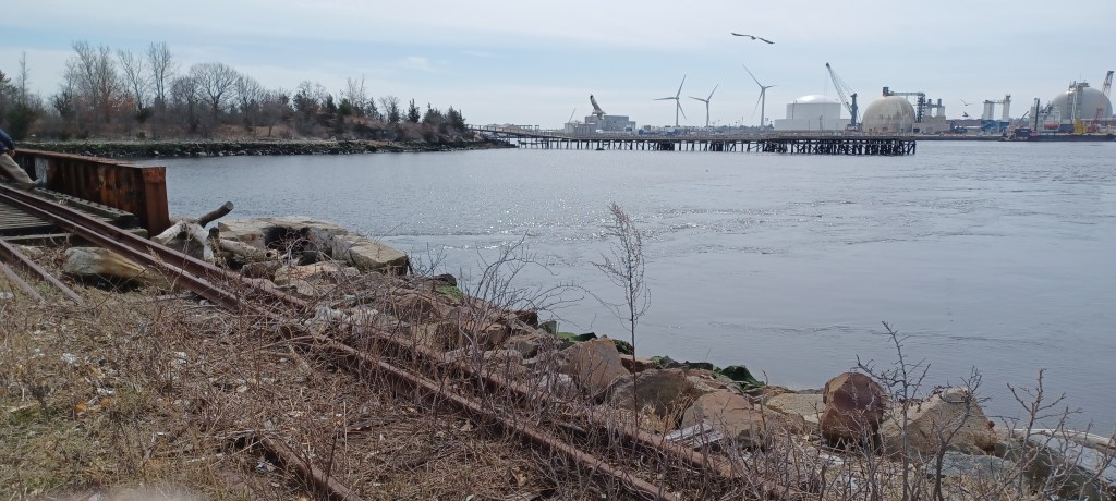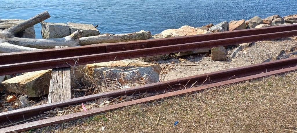 Despite the relative ease of building railroads alongside waterways, that proximity has left transportation corridors at risk of washouts. Count on it—rivers and oceans flood. While ambling along the shoreline of Narragansett Bay we saw evidence of catastrophic storm events, particularly the impact of these storms on the rail bed underneath the rails next to where we traveled.