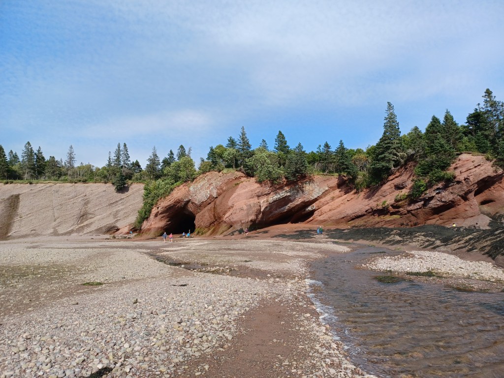 The nearby St. Martin’s sea caves are only accessible (not handicapped accessible) at low tide. The Bay of Fundy fills the entrances to the caves as the waves return.