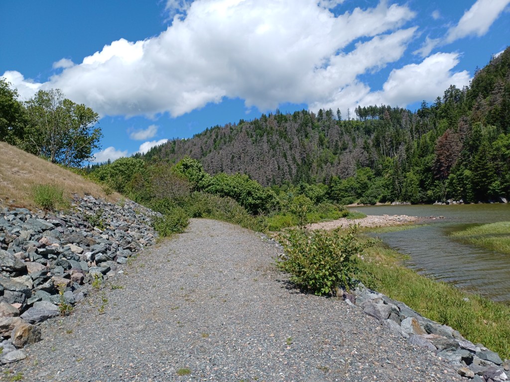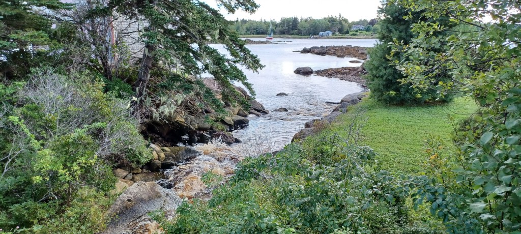 We found a small park the (Fundy Discovery Site) along the highway in Truro, NS with an Easy Walk gravel path alongside the Salmon river that flows into the Bay. This area is known for its daily tidal wave of sorts (a tidal bore) that steams up the waterway that is part of the Bay of Fundy, pushing the river back upstream. We were not able to time our visit to witness this phenomenon, but enjoyed walking alongside the river regardless. Tides wait for no one, so checking a tide chart (the high and low tides by about an hour each day) is essential if you want to witness specific events.