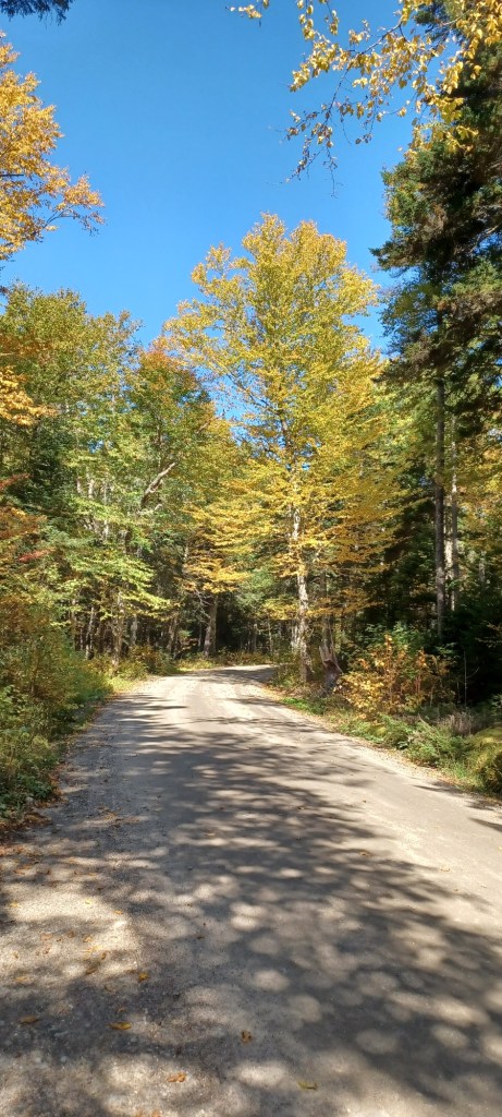 Did I mention that the mountains were resplendent with autumn colors? At the highest elevations, yellows (beeches and birches mostly) were the dominant hue. Lower elevations displayed shades of orange and red. The lowest areas, those at the edge of wetlands, featured crimson swamp maples. They did their best to put on a show before the bright red foliage blew off or simply released its hold on the branches that had nourished them through the summer.