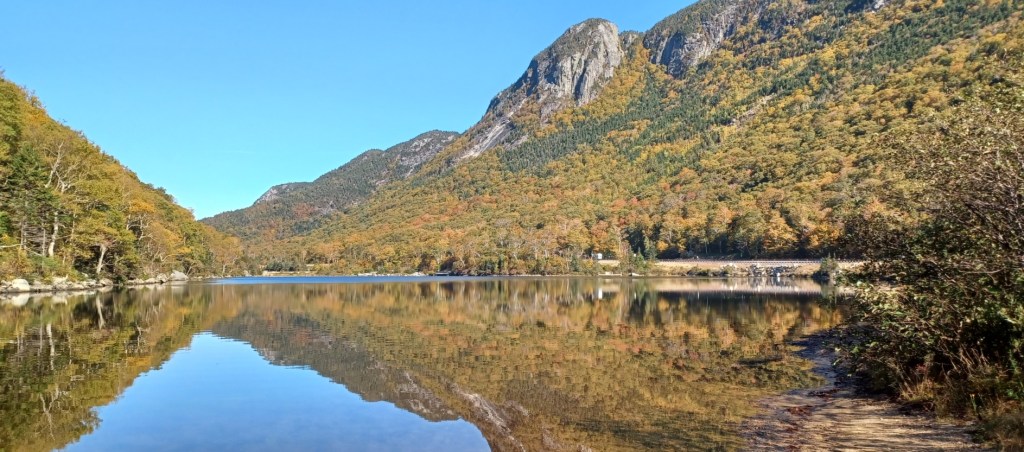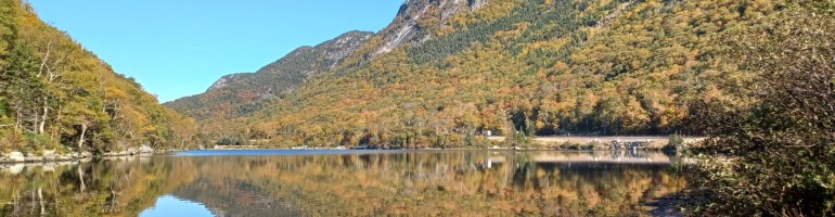 A family wedding took us to the White Mountains in New Hampshire in the midst of foliage season. (Thanks so much and best wishes, Andrew and Tori!) Rather than rush up and back in one day, we chose to take our camper with us and spent the weekend at the Lafayette Place Campground, in the midst of Franconia Notch State Park. It was not far from the Horse and Hound Inn, where the wedding was to take place.
