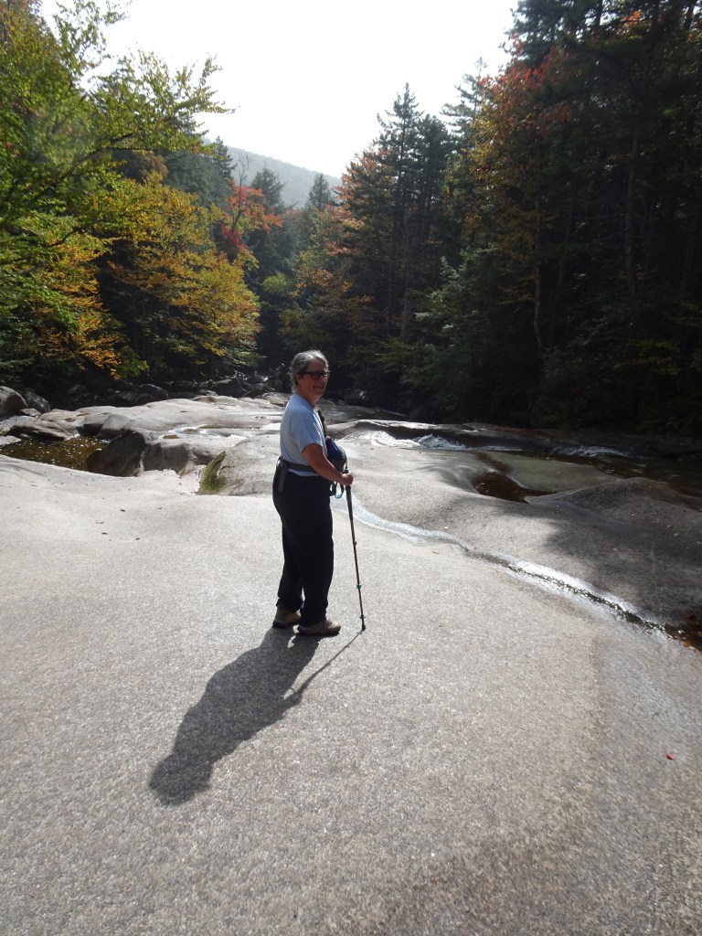 Bridges take visitors over the Pemigewasset river that wends its way through the woods. A rougher path leads up to several much larger waterfalls. I managed to navigate the roots on the trail to the first large waterfall, which is another place where cascading water has worn the rock smooth over time. More spectacular falls await upstream of this rooty path, but common sense prevailed. Steep climbs that feature lots and lots of roots do not make for an Easy Walk. I turned back, content with the smoother paths that offered more than enough to fill my heart.