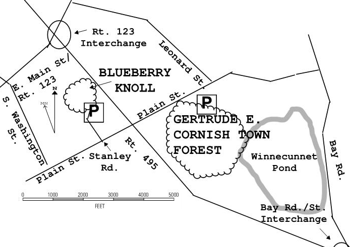 Using the book as my reference, the next map included both Blueberry Knoll, then the nearby Gertrude Cornish Town Forest. Having the printed manuscript in hand and referencing the maps was a great test of how others might be able to use the trail guide. I was pleased to see that the maps are accurate, and the addresses, put into my GPS, got me right to where I hoped to go.