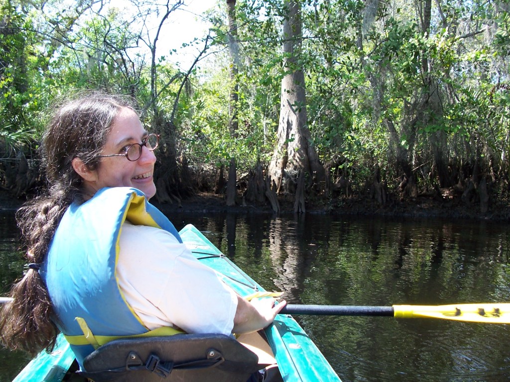 It was mid-day when the phone call came. I was in the middle of the grocery store. Over the phone I heard, “I’m in a kayak at Jonathan Dickinson State Park. There’s an alligator resting on the river bank between where two narrow streams join. Either way, I have to paddle right past him. And there’s a chicken sandwich behind me in the kayak.”