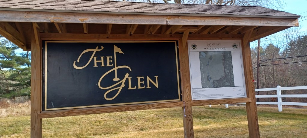 “The Glen” walking path was known in the past to area residents (and golfers) as the Glen Ellen Country Club. After the land’s sale to Toll Brothers, the site was developed into a 55+ housing community. Six different review boards in Millis advocated strongly to retain some open space there. Ultimately one hundred or so acres of the former golf course adjacent to Bogastow Brook is now open the public as a maintained walking trail system.